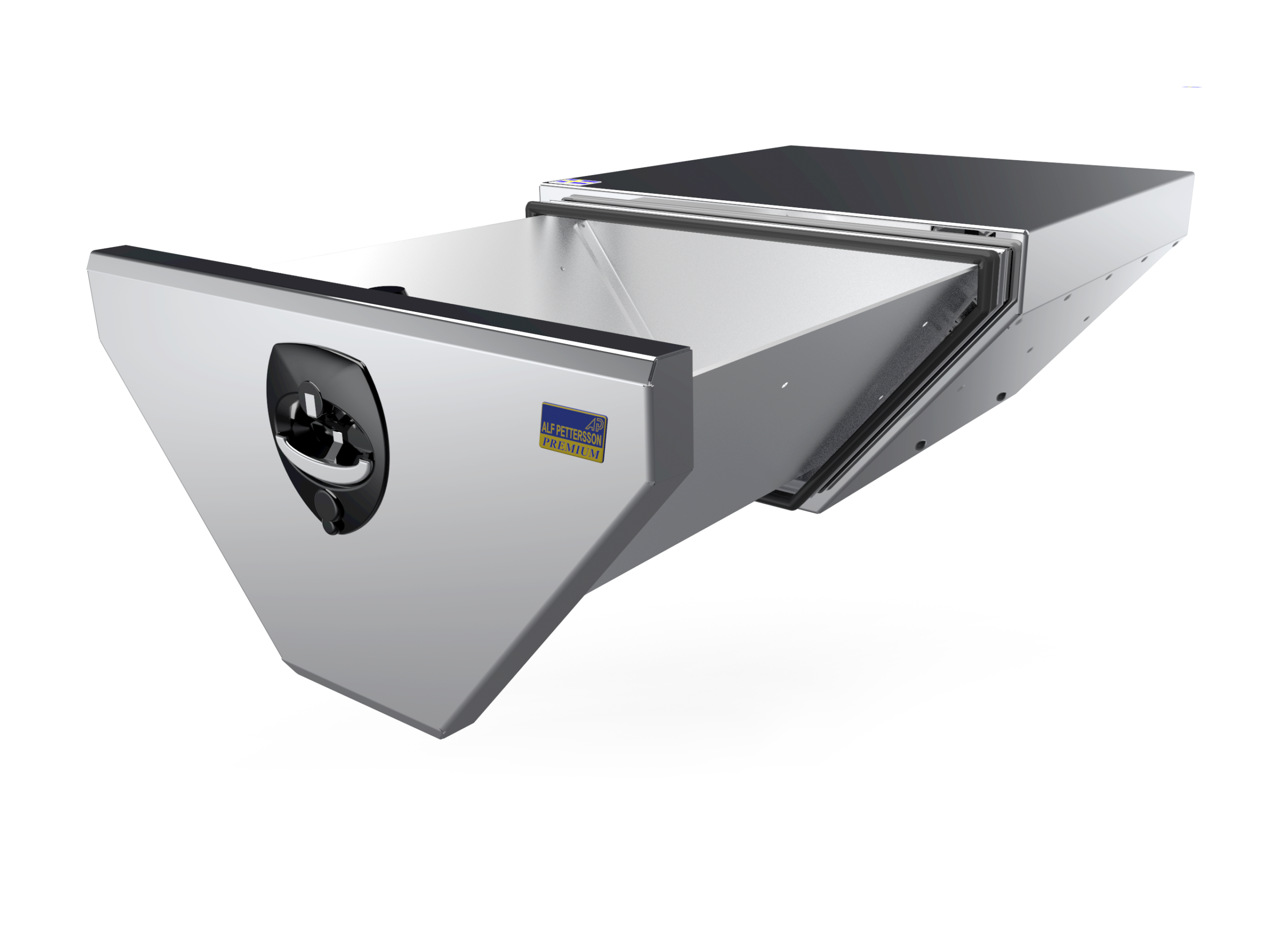 AP Boggi är lösningen för lättillgänglig och enkel förvaring som tar tillvara utrymmet mellan bilens boggi-och tridemskärmar. Det är ett utmärkt och smart sätt att lösa förvaringsproblematiken av exv. brandsläckare, spännband eller annan strö-förvaring. Du kan välja mellan lucka med gångjärn i nederkant eller i ovankant, hurtsutdrag eller helt öppen förvaring (strö).